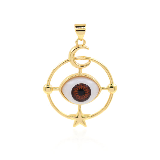 18K Gold Filled Devil's Eye, Evil Eye Pendant, Lucky Eye Pendant 33x26mm