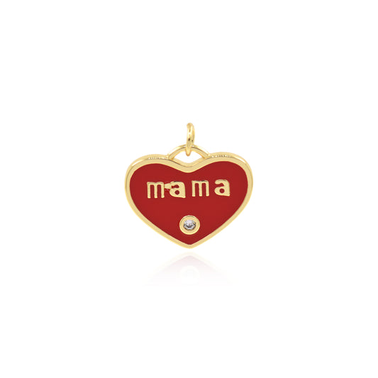 18K Gold Filled Enamel Heart Pendant,Mama Charm Necklace 20x17mm