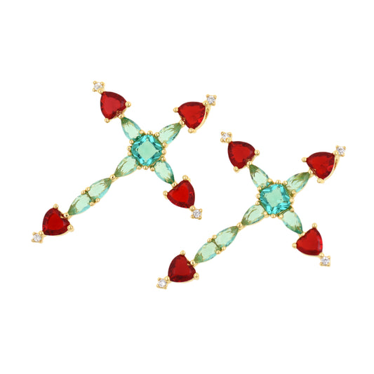18K Gold Filled Fashion Luxury Colorful Zircon Cross Pendant 43x32mm