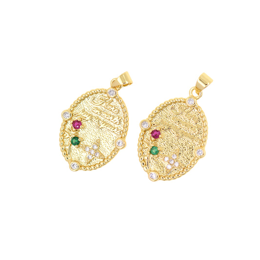 18K Gold Filled Zircon Butterfly Pendant, Round Butterfly Pendant 21.5mm