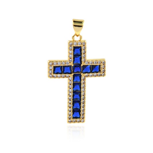 Clear Cubic Cross Pendant,Gold Plated Cross Jewelry Accessory 37x23mm