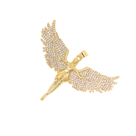 CZ Micro Pave Angel Pendant, 18K Gold Filled Diamond Guardian Pendant 49x37mm