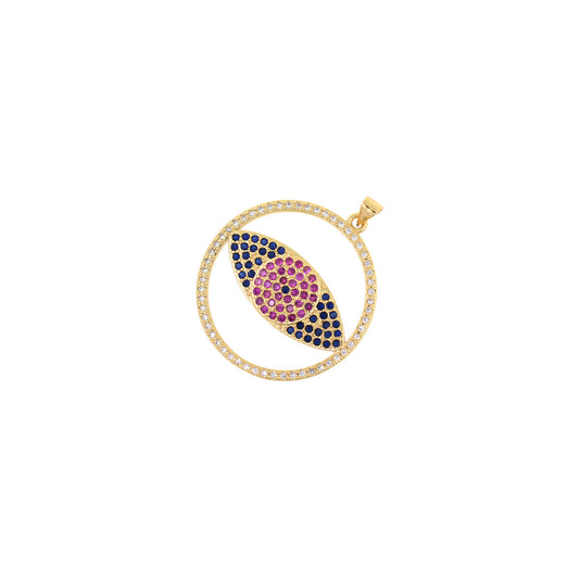 CZ Micro Pave Evil Eye Pendant, Openwork Round Evil Eye Pendant 32mm