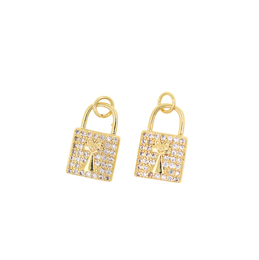 CZ Micro Setting Pavé Lock Pendant, Lock Charm, Cat Charm 16x10mm