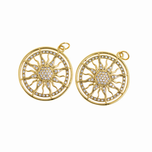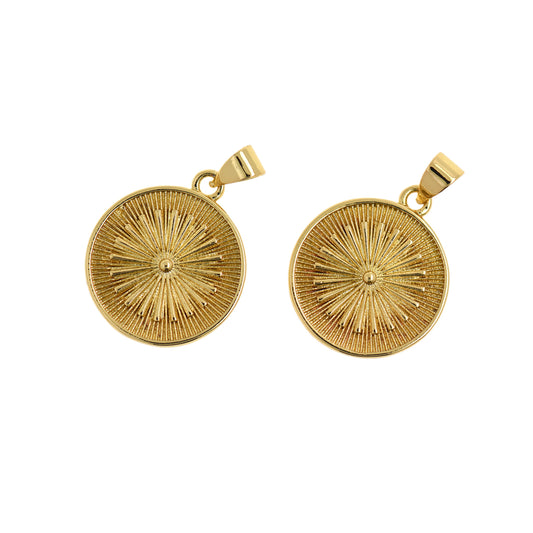 18K Filled Gold Diamond Round Sun Necklace Pendant 23.5mm