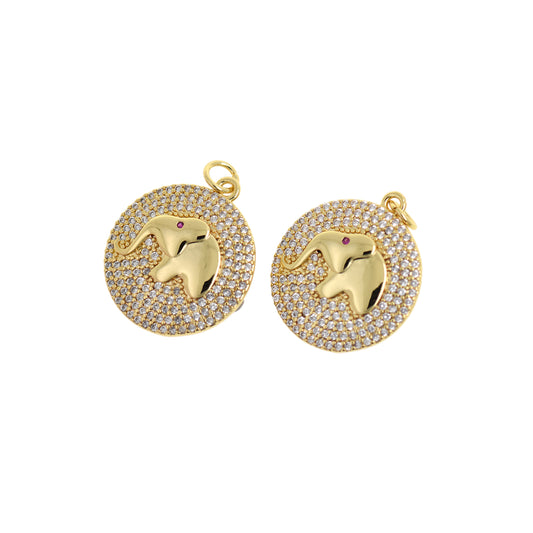 18K Filled Gold Elephant Pendant, Brass Elephant Pendant 21x20mm