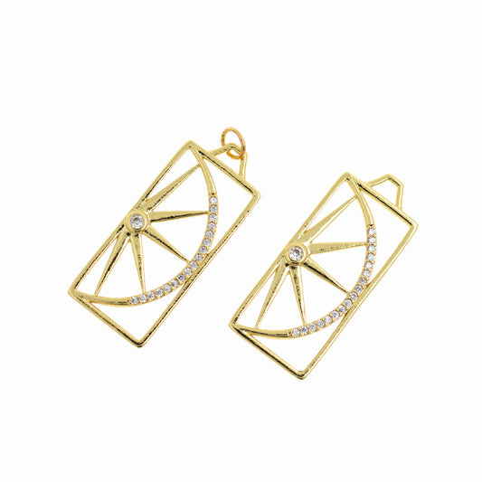 18K Filled Gold Diamond Rectangle Charm 32x14mm