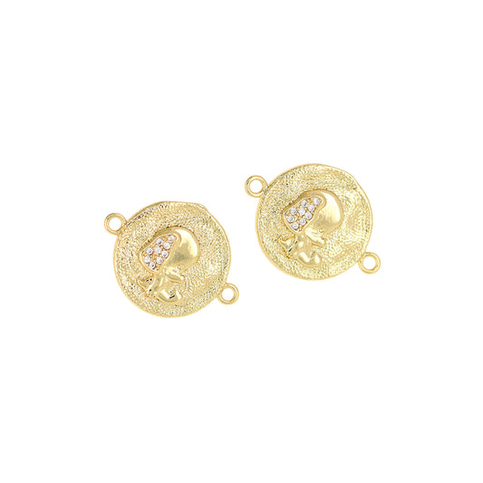 18K Filled Gold Diamond Round Dog Connector, Dog Charm 16mm
