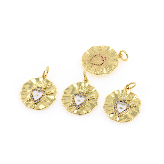 Hammered Gold Heart Pendant,Enamel Heart Layering Necklace Charm 19x22mm