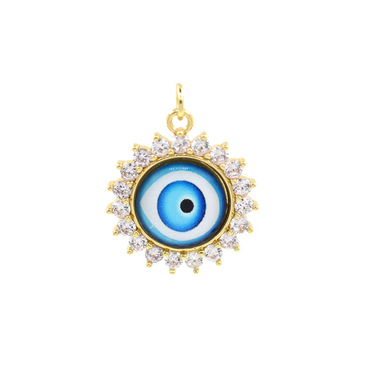 Micro Pave Cubic Zirconia Round Evil Eye Pendant Charm 20.5mm