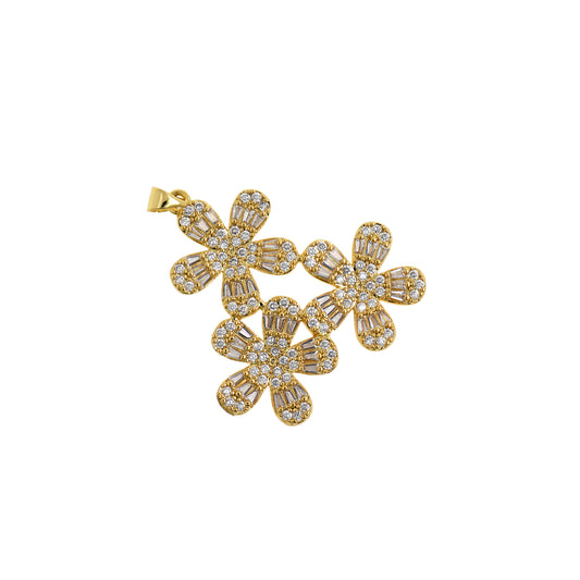 Micro Pave CZ Flower Pendant, Cubic Zirconia Pave Flower Charm 40x36.5mm