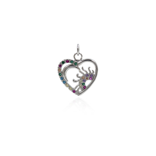 Multi-color CZ Pave Heart Pendant,Dainty Heart Charms 17x18.5mm