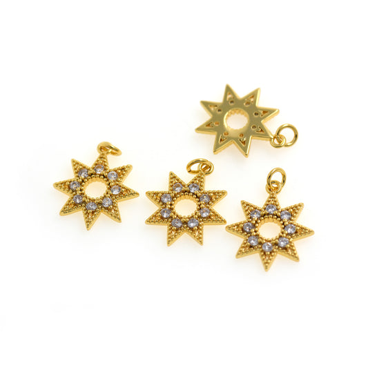 Octagonal Star Pendant Gold and White Diamond Star Pendant 15x17mm