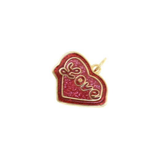 Sparkling LOVE Word Heart Pendant In Red 15.8x18.5mm