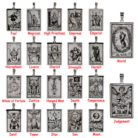 Stainless Steel Tarot Card Necklace Pendant 24x46mm