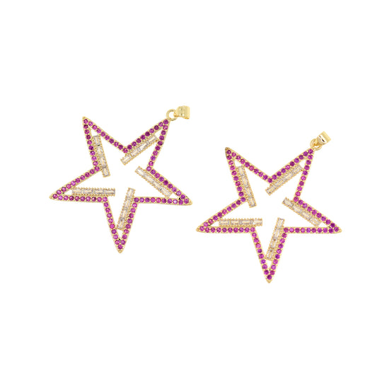 18K Filled Gold Zircon Star Pendant, Gold Plated Zircon Star Pendant 45x44mm