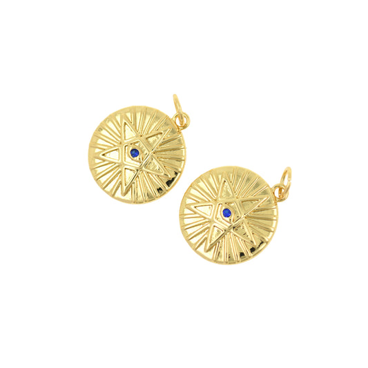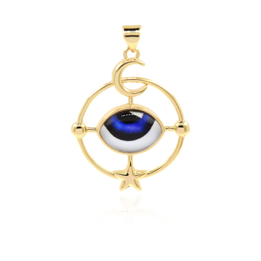 18K Filling Gold Diamond,Star Evil Eye Pendant 21x19.5mm