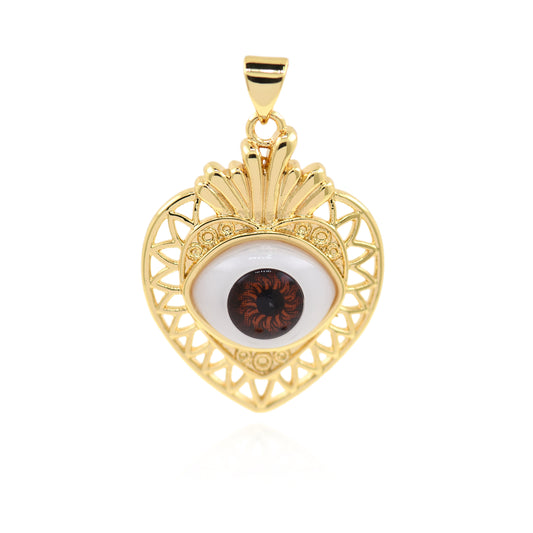 18K Filled Gold Zircon Heart Evil Eye Pendant, Heart Charm 29X22mm