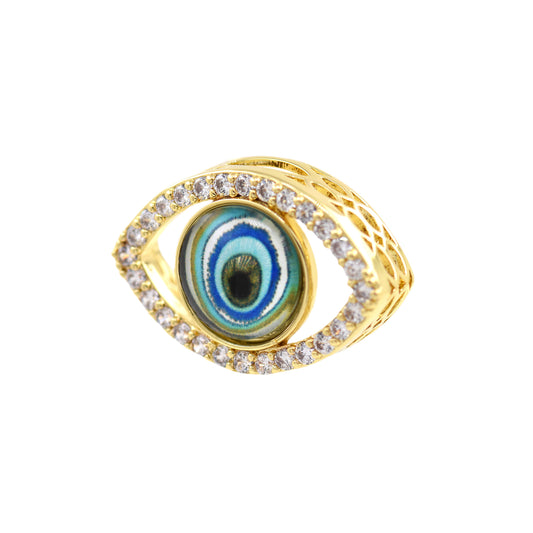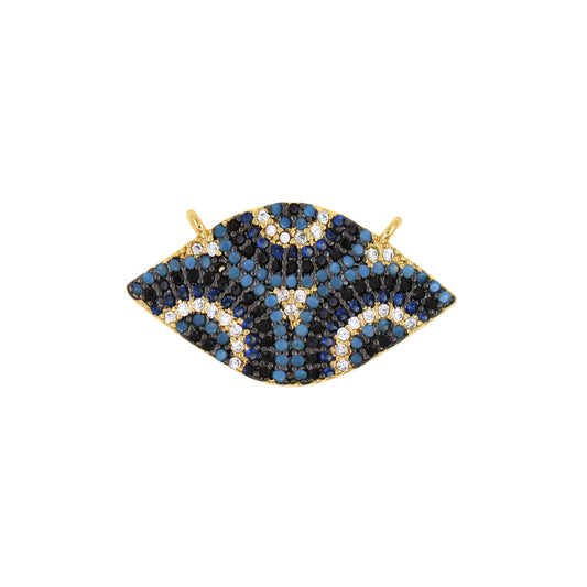 18k Shiny Gold Plated Evil Eye Charm, Gold Plated Evil Eye Connector 38x23mm