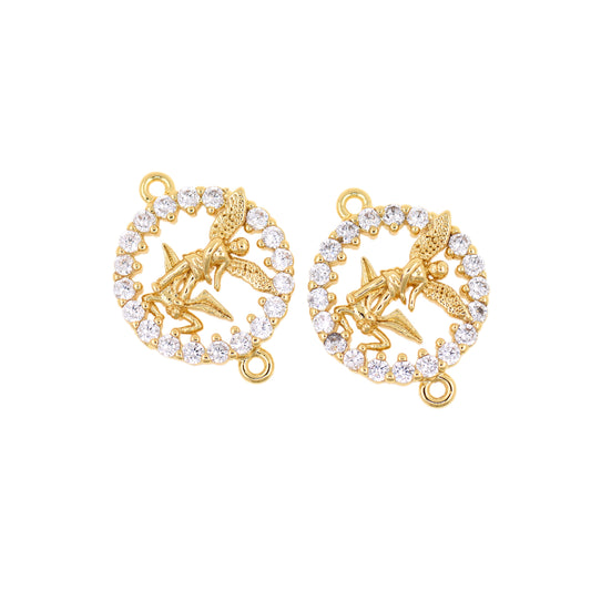 18K Gold Round Hollow Delicate Angel Charm, Bracelet Necklace Connector Charm 16mm
