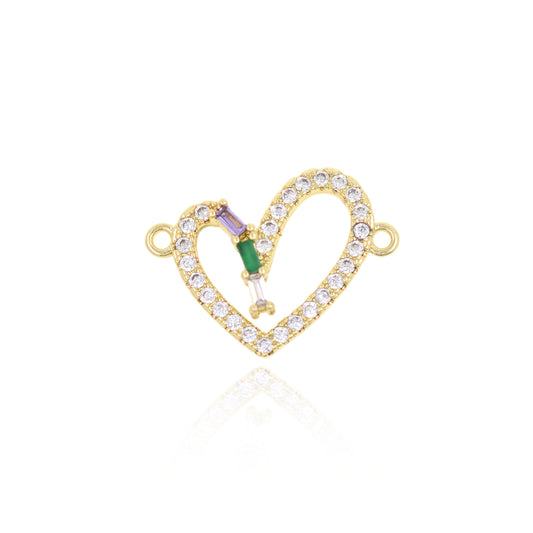 Gold Plated Zircon Heart Connector, Heart Charm 22x17mm