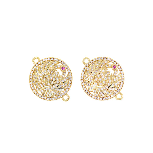 18K Filled Gold Diamond Round Dog Connector, Dog Charm 16mm