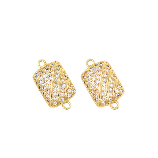 Brass Gold Plated Diamond Rectangular Necklace Connector 21x12mm