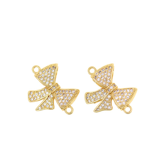 CZ Micro Pave Bow Necklace Connector, Bow Charm 21x16mm