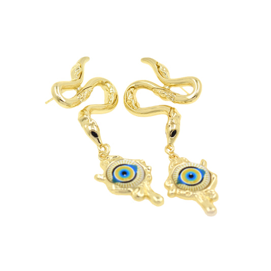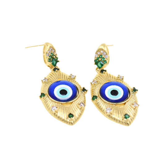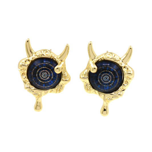 Evil Eye Earrings, 18k Gold Filled Demon Jewelry 28x19mm