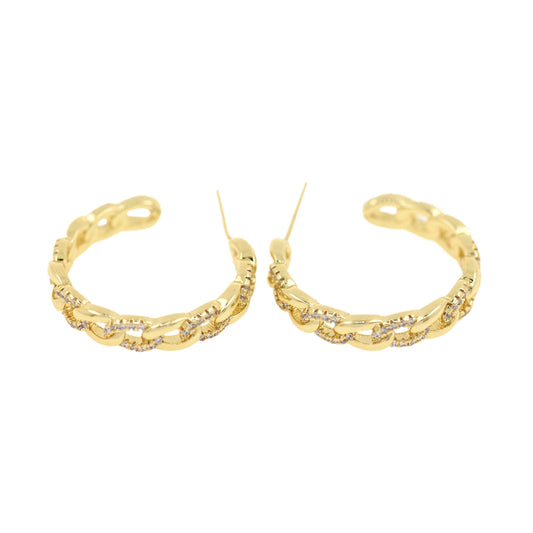 18K Filled Gold Chain Hoop Earrings with Diamonds, C Earrings 27x5mm