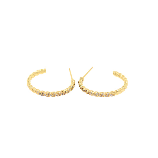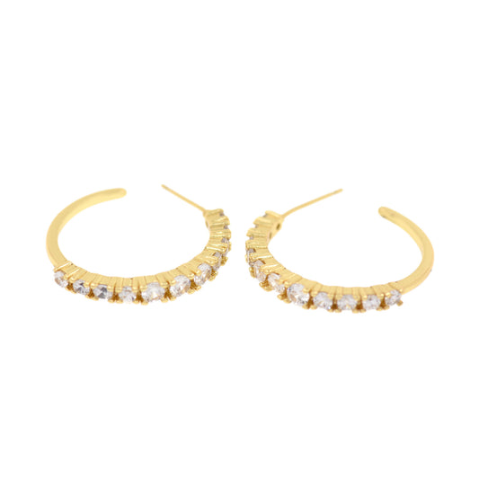 Gold Plated Brass C-Hoop Earrings with Diamonds, Delicate Earrings 27x24mm