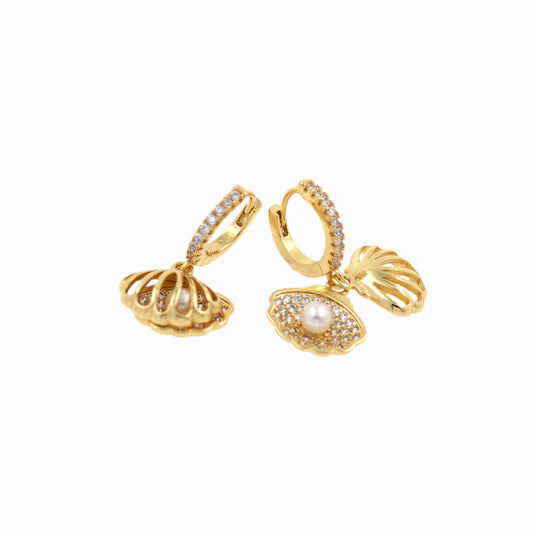 Seashell Hoop Earrings,Pearl Shell Minimalist Huggie Earrings 25x13mm