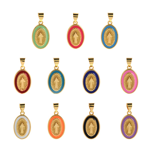 Gold Filled Enamel Virgin Mary Pendant 18x11mm