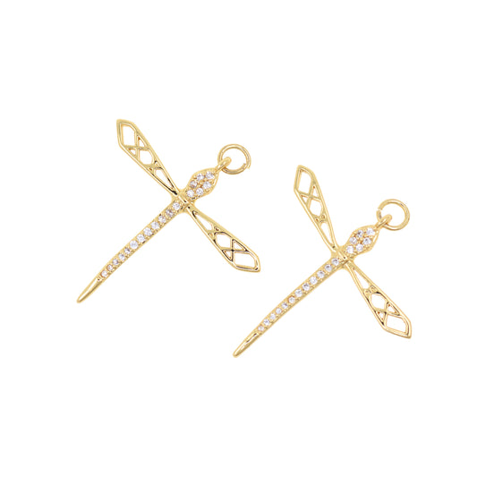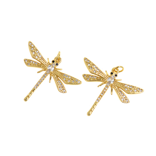 18K Filled Gold Diamond Dragonfly Pendant, CZ Micropavé Dragonfly Charm 31x27mm