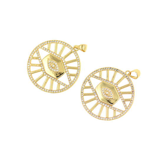 18K Gold Round Disc Arrow Pendant,Brass Metal Arrow Charm 23mm