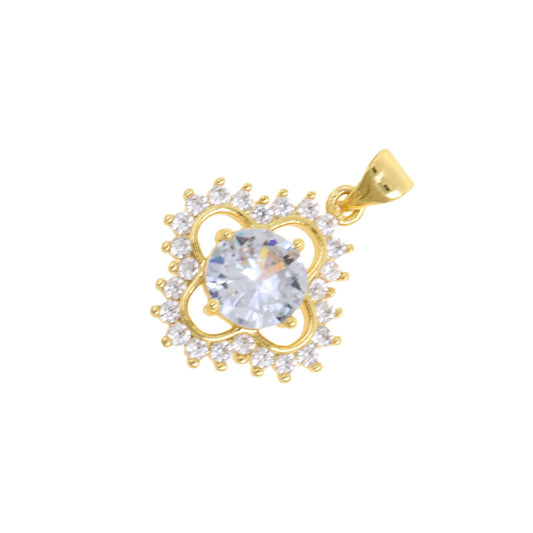 Chic Four Leaf Clover Pendant With Clear CZ Center 20x18mm