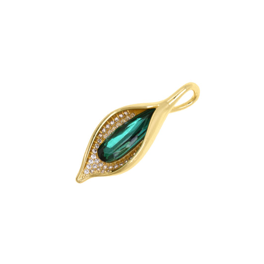 Elegant Leaf Shaped Pendant With Deep Green Teardrop Crystal 38x14mm
