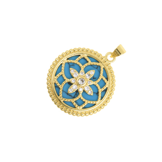 Boho Round Mandala Pendant With Blue Enamel Base 25mm
