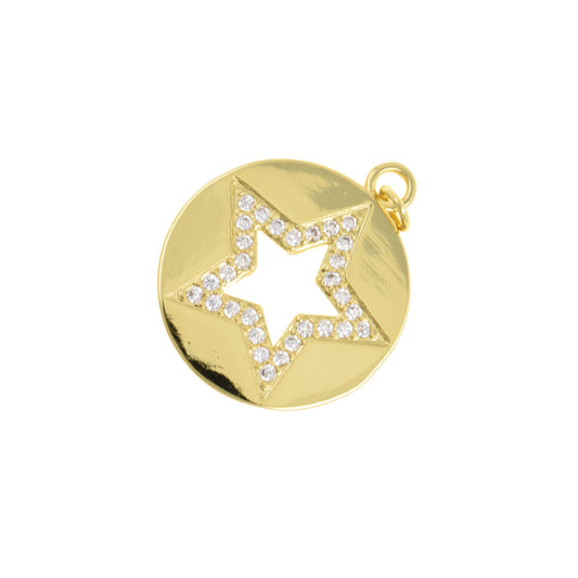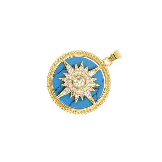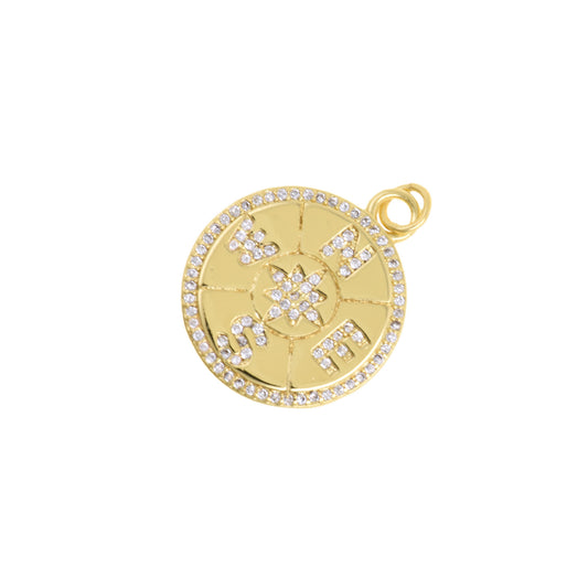 Gold Plated Medallion Pendant With CZ Engraved Compass Letters 20mm