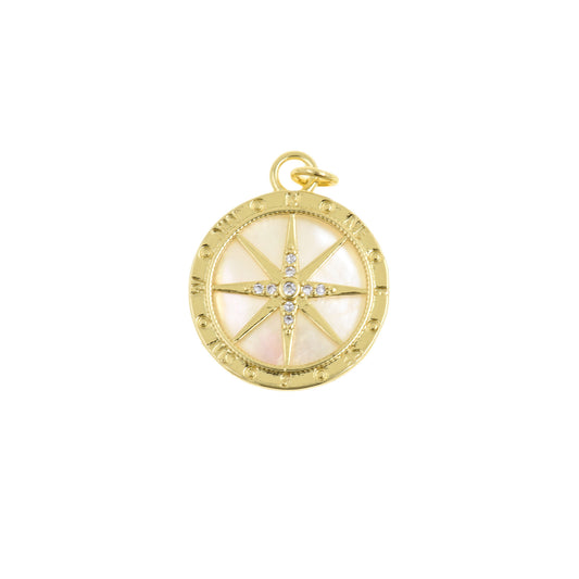 Elegant Compass Pendant With Mother Of Pearl Inlay 20mm