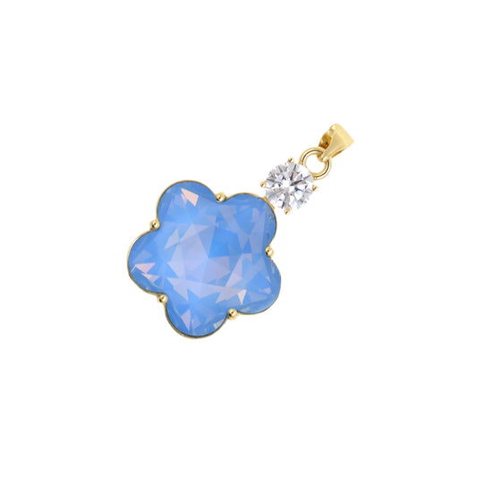 Exquisite Floral Pendant with Gold Border and Gem 19.2x28.2mm