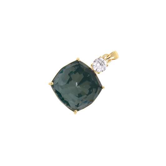 Chic Deep Square Pendant, Gold-Edged with Crystal Top 18.7x28.1mm