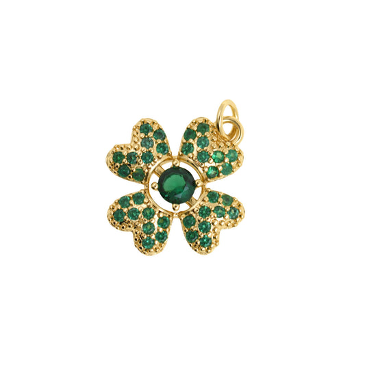 Luxurious Four-Leaf Clover Pendant with Green Gems 17x19.4mm