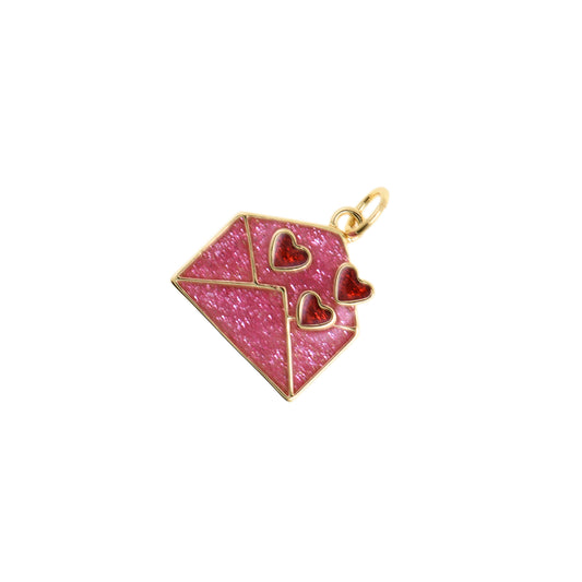 Love Letter Envelope Pendant With Red Hearts 14x14.8mm