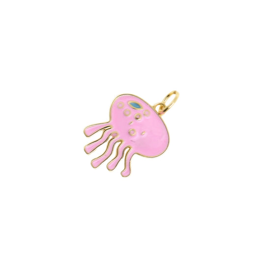 Adorable Pink Jellyfish Pendant with Gold Trim 12.5x16.5mm