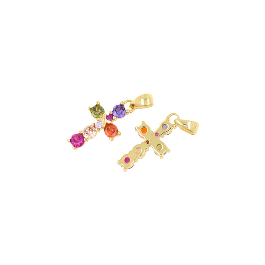 Dainty 18k Gold Filled Cross Pendant,Colorful CZ Pave Cross Charm 16.5x9mm