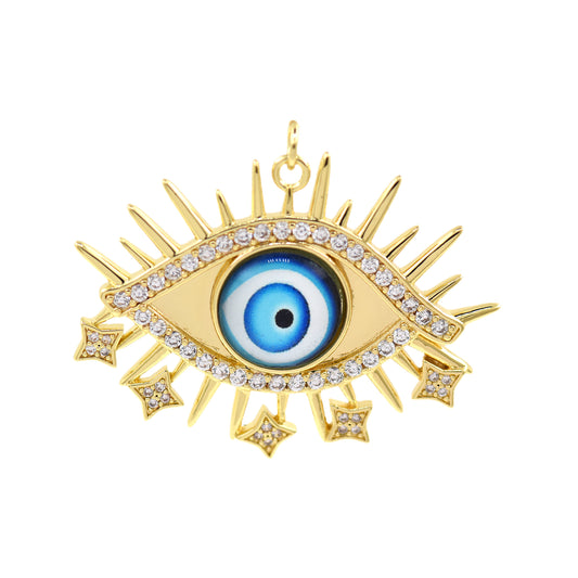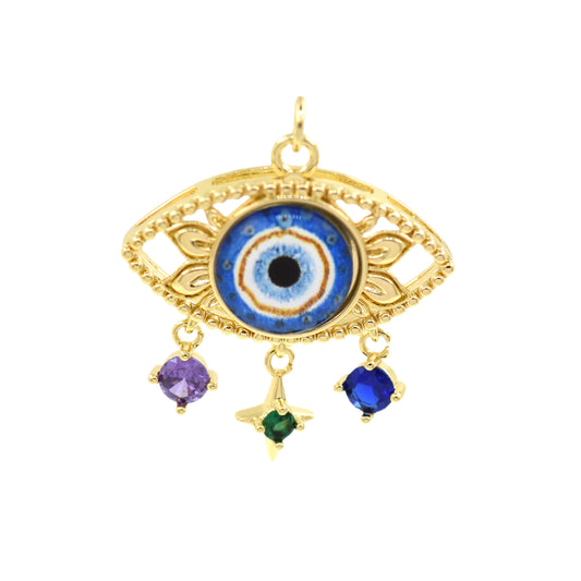 Colorful Zircon Evil Eye Pendant, Religious Jewelry 42x32.5mm