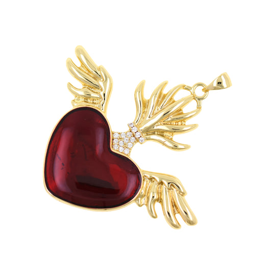 Angel Wings Heart Pendant, Enamel Charm Heart Necklace 47.5x42.5mm