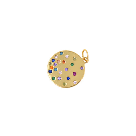 18K Gold Plated Colored Zircon Snake Pendant, Round Coin Relief Charm 18mm