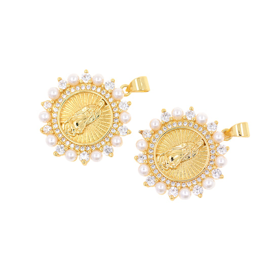 Gold Our Lady of Guadalupe Rosary Parts, Lady Guadalupe Link Charm Pendant 16mm